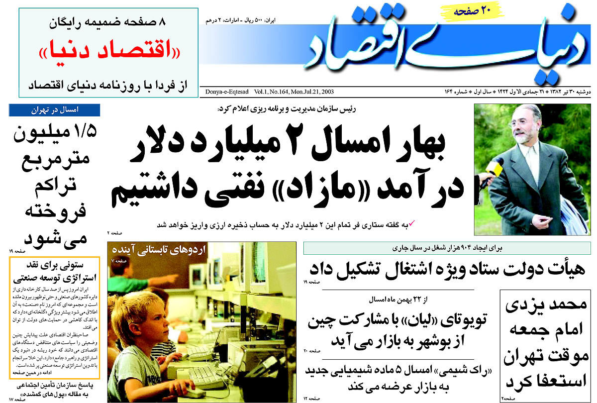 اخبار صنعت، معدن و تجارت روزنامه شماره ۱۶۳