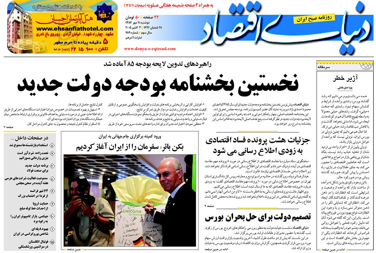 اخبار صنعت، معدن و تجارت روزنامه شماره ۷۹۰
