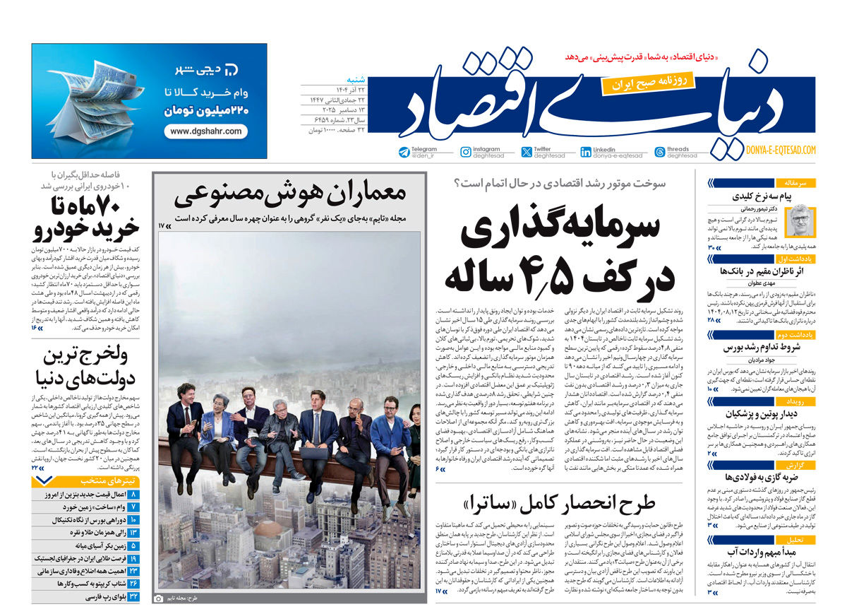 نسخه کامل شماره امروز روزنامه دنیایاقتصاد را اینجا بخوانید